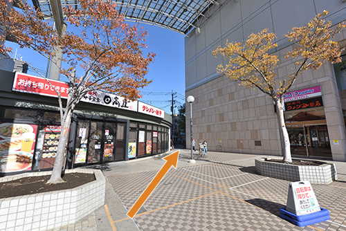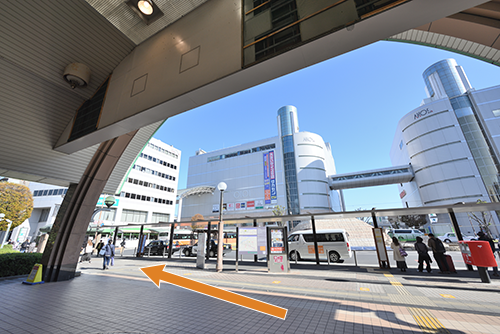 1草加駅改札を出て東口へ出て、バスロータリーの左方向へお進みください。