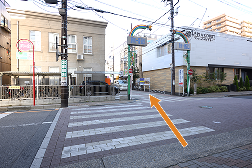4交差点を渡り、そのままお進みください
